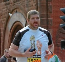 Steve approaching the Finish Line in Copley Square