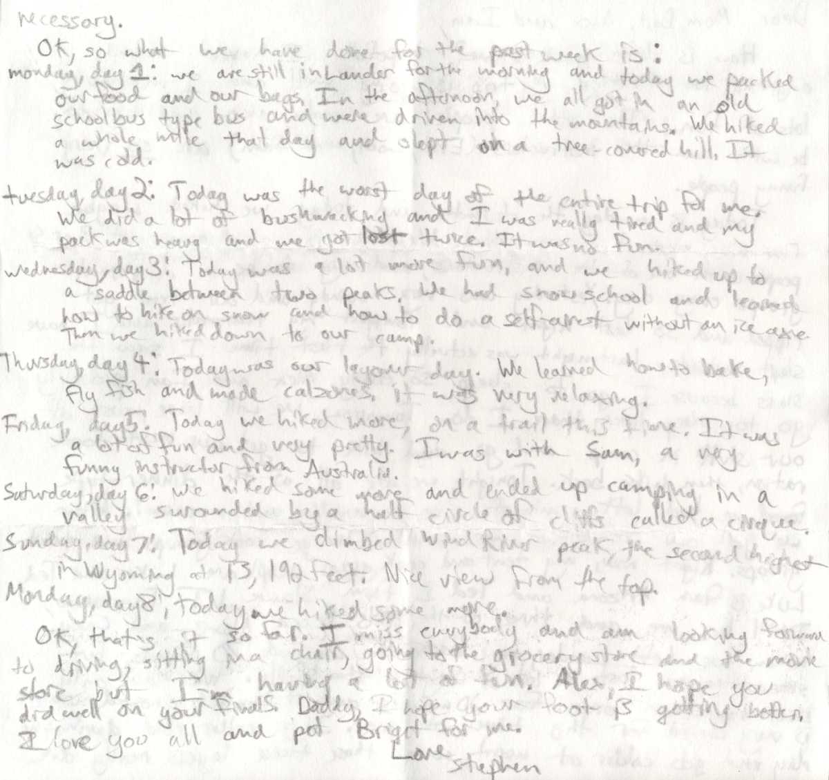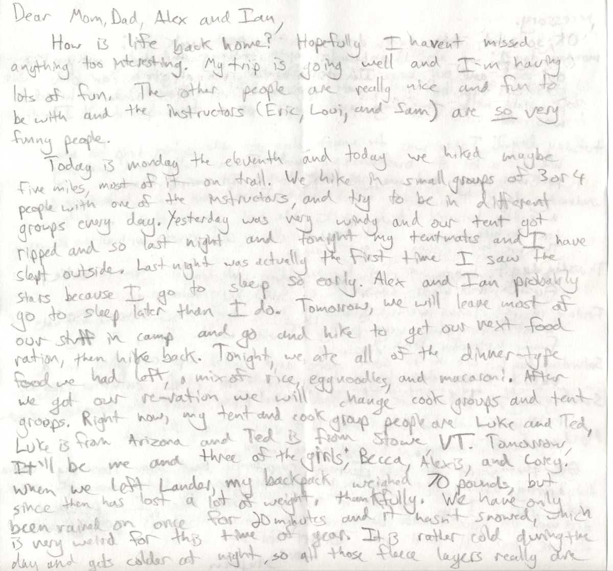 NOLS Wind River Hiking Trip Update as of June 11, 2001